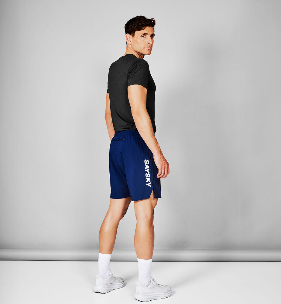 Pace Shorts 6'' er en videreføring av SAYSKYs klassiske løpeshorts, men litt lengre enn Pace-shorts 5", og med en liten splitt på begge sider. De er utrolig lette og pustende, med normal passform og designet for høy ytelse. De kommer i sort med en hvit vevd SAYSKY-etikett foran og en hvit SAYSKY-logo på baksiden.